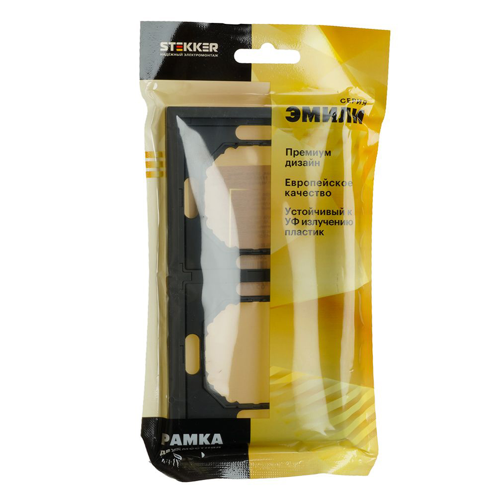 Производитель STEKKER Полное наименование Рамка 2-я Черный уголь Эмили Код производителя (Артикул) 49859 Серия Эмили Код Просвет 013868 Высота изделия 9,4 Единица измерения шт Высота Упаковки, мм 14 Длина Упаковки, мм 176 Цвет черный уголь, soft touch -