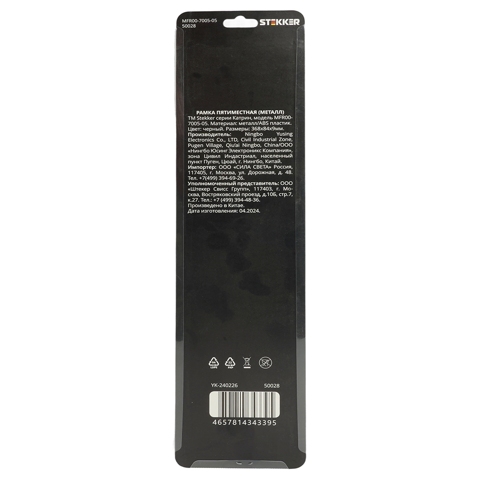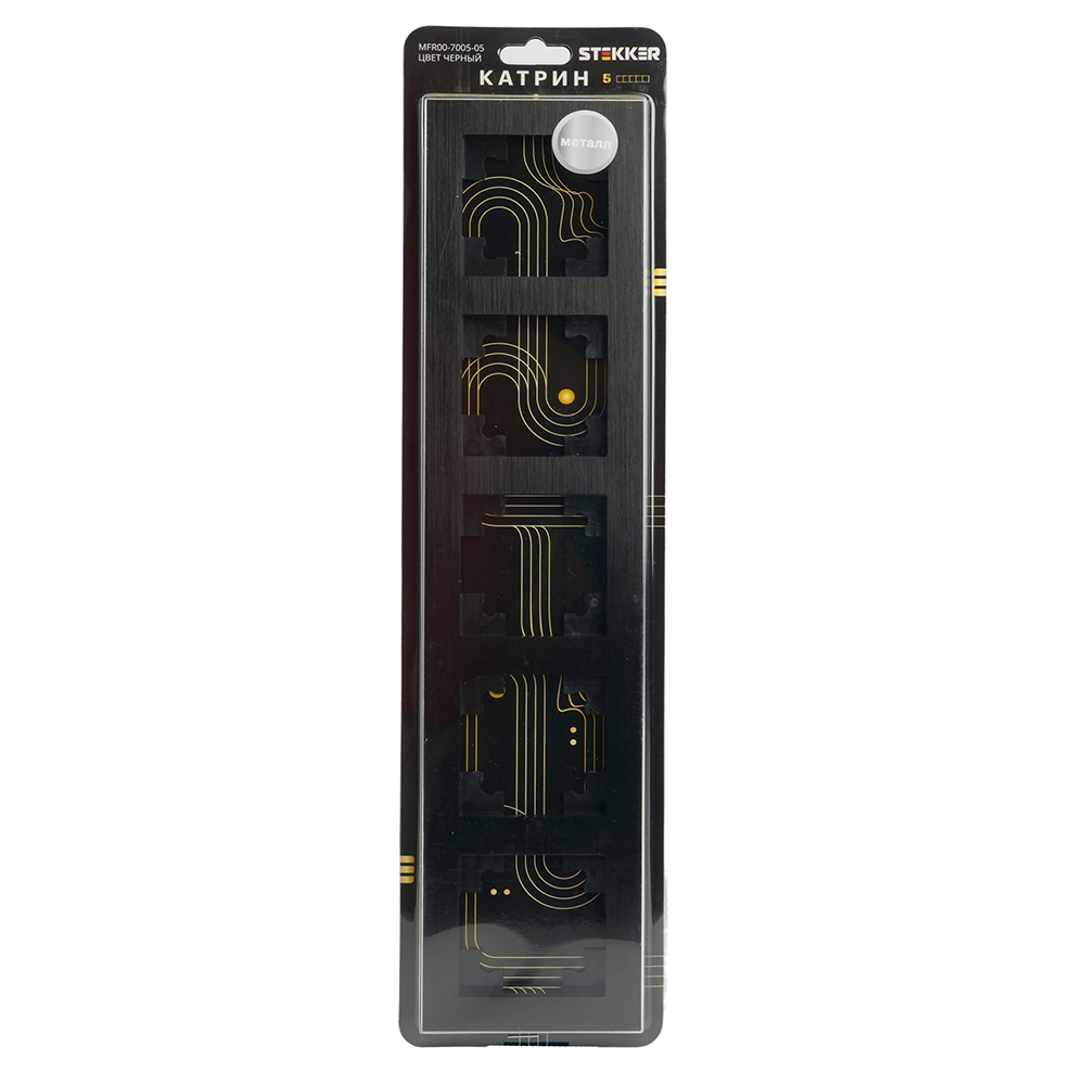Производитель STEKKER Полное наименование Рамка 5-я металл Черный Катрин Код производителя (Артикул) 50028 Серия Катрин Код Просвет 017818 Высота изделия 9 Единица измерения шт Высота Упаковки, мм 12 Цвет Черный -