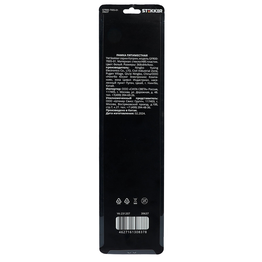 Производитель STEKKER Полное наименование Рамка 5-я стекло Белый Катрин Код производителя (Артикул) 39637 Серия Катрин Код Просвет 014106 Высота изделия 9 Единица измерения шт Высота Упаковки, мм 10 Длина Упаковки, мм 410 Ширина Упаковки, мм 105 Цвет Белый -