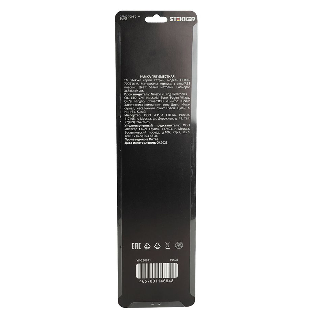 Производитель STEKKER Полное наименование Рамка 5-я стекло Белый матовый Катрин Код производителя (Артикул) 49598 Серия Катрин Код Просвет 015689 Высота изделия 9 Единица измерения шт Высота Упаковки, мм 10 Длина Упаковки, мм 410 Ширина Упаковки, мм 105 Цвет Белый матовый -