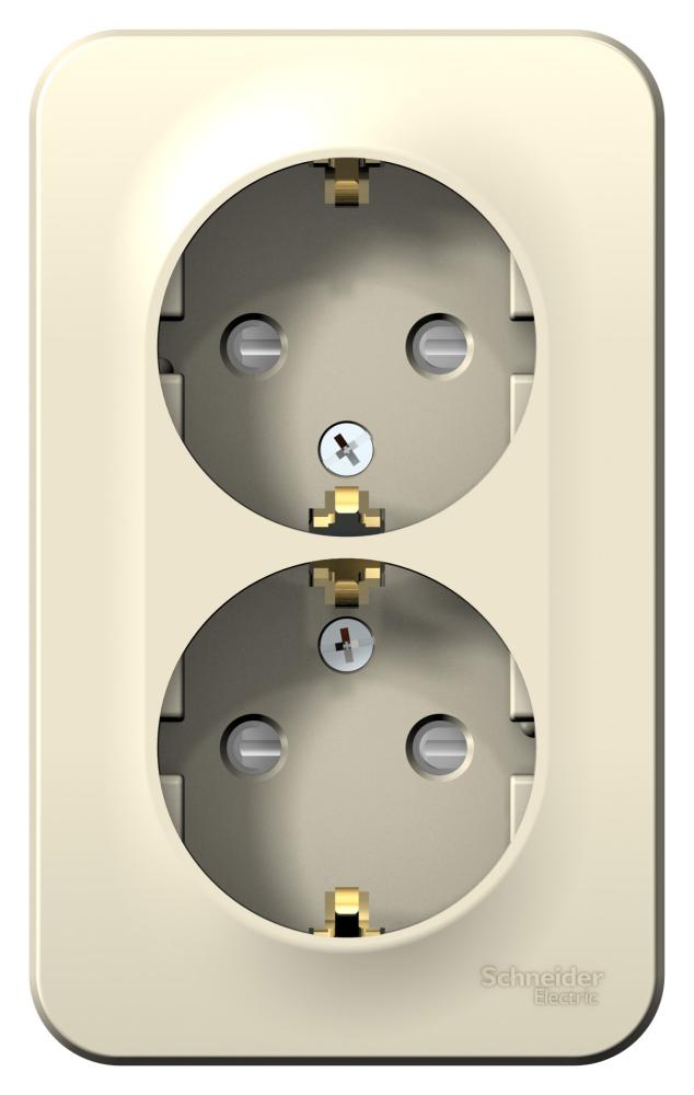 Розетка Schneider Electric BLANCA (молочный, открытой установки) двухместная, с заземлением, шторками и изолирующей пластиной предназначена для сетей до 250В, на ток до 16А. Двухместная розетка позволяет подключить два устройства в одном месте. Шторки и заземление обеспечивают дополнительную безопасность при косвенном прикосновении.