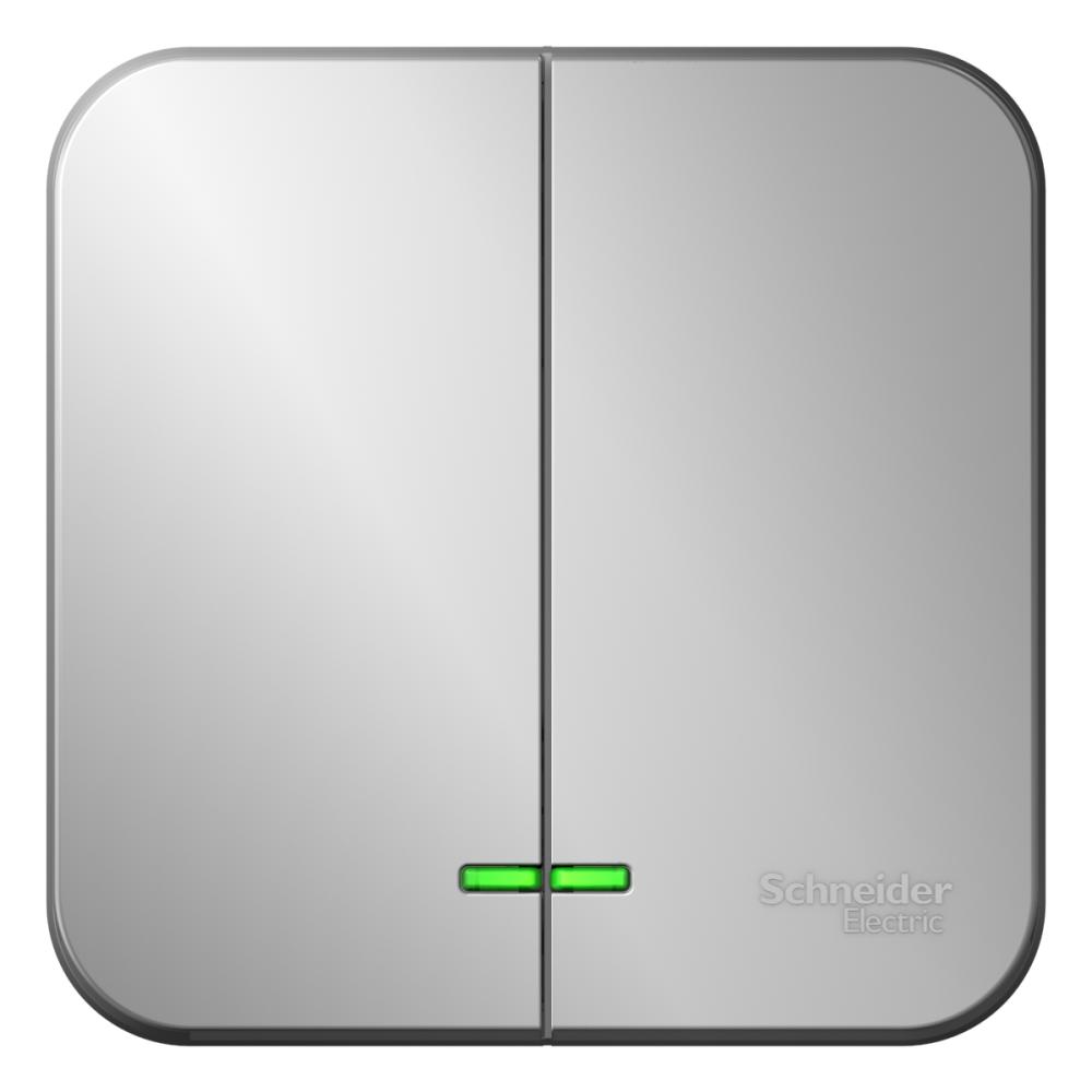 Выключатель Schneider Electric BLANCA (алюминий, открытой установки) с изолирующей пластиной двухклавишный предназначен для сетей до 250В, на ток до 10А. Подсветка делает его легко находимым в отсутствие освещения. Двухклавишный выключатель позволяет управлять двумя источниками света из одной точки.