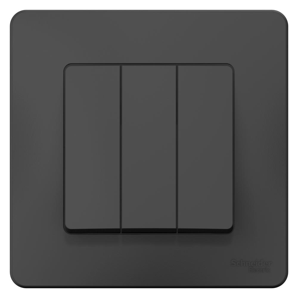 Выключатель Schneider Electric BLANCA (антрацит, скрытой установки) трехклавишный предназначен для сетей до 250В, на ток до 10А. Подсветка делает его легко находимым в отсутствие освещения. Трехклавишный выключатель позволяет управлять тремя источниками света из одной точки.